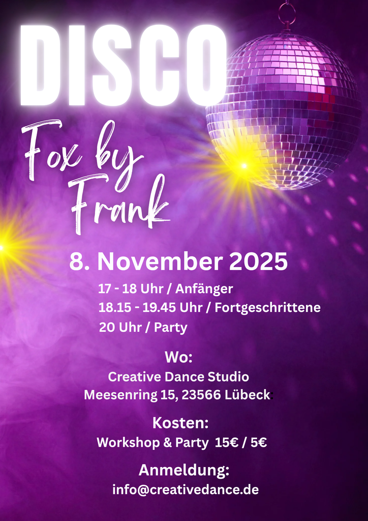 - *18:15 Uhr*: Open Level Kurs – Für alle, die Inspirationen und Herausforderungen im Discofox suchen.